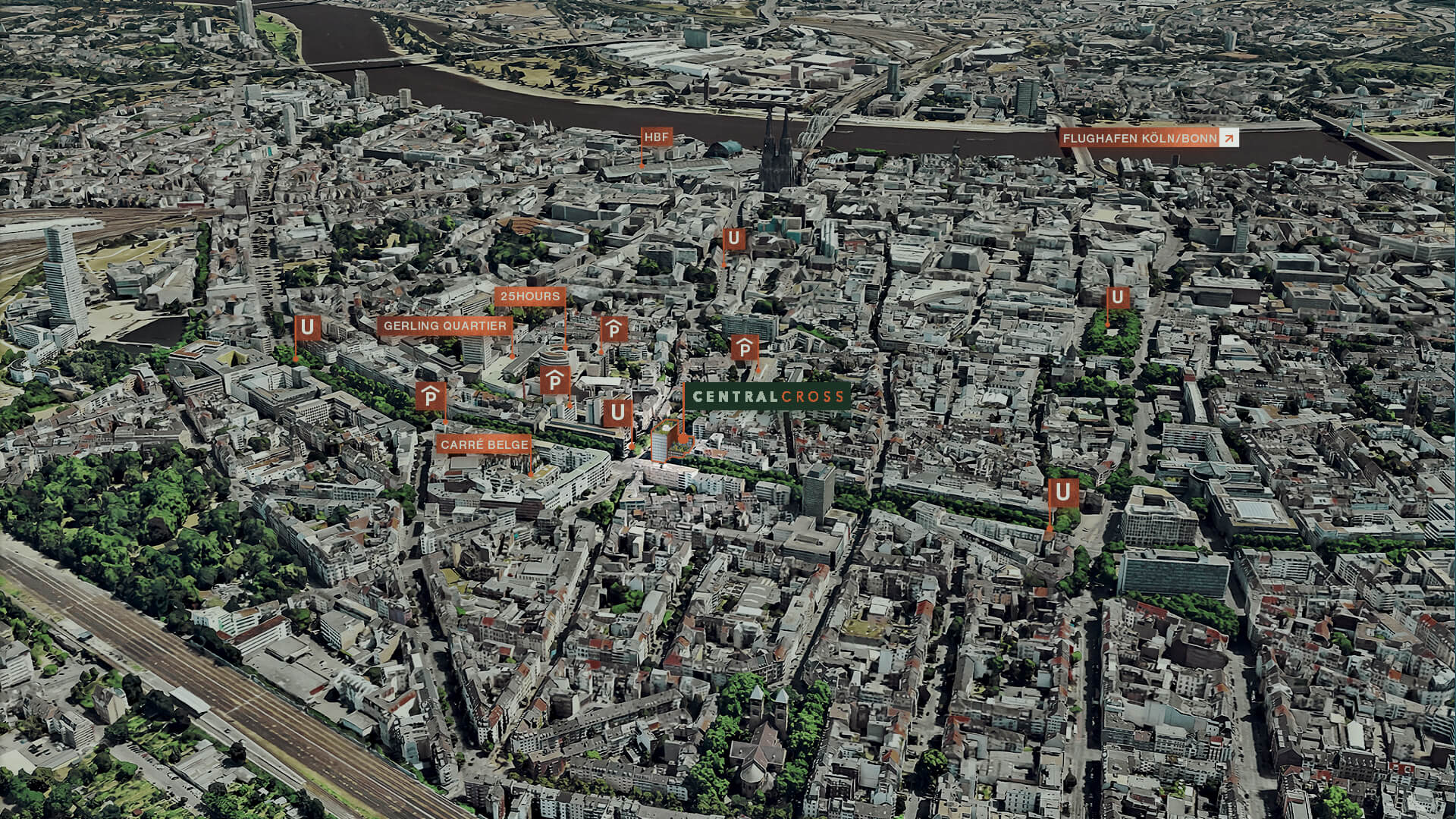 Das CENTRAL CROSS befindet sich in optimaler Verkehrslage direkt am Knotenpunkt Friesenplatz in der Kölner Innenstadt.
