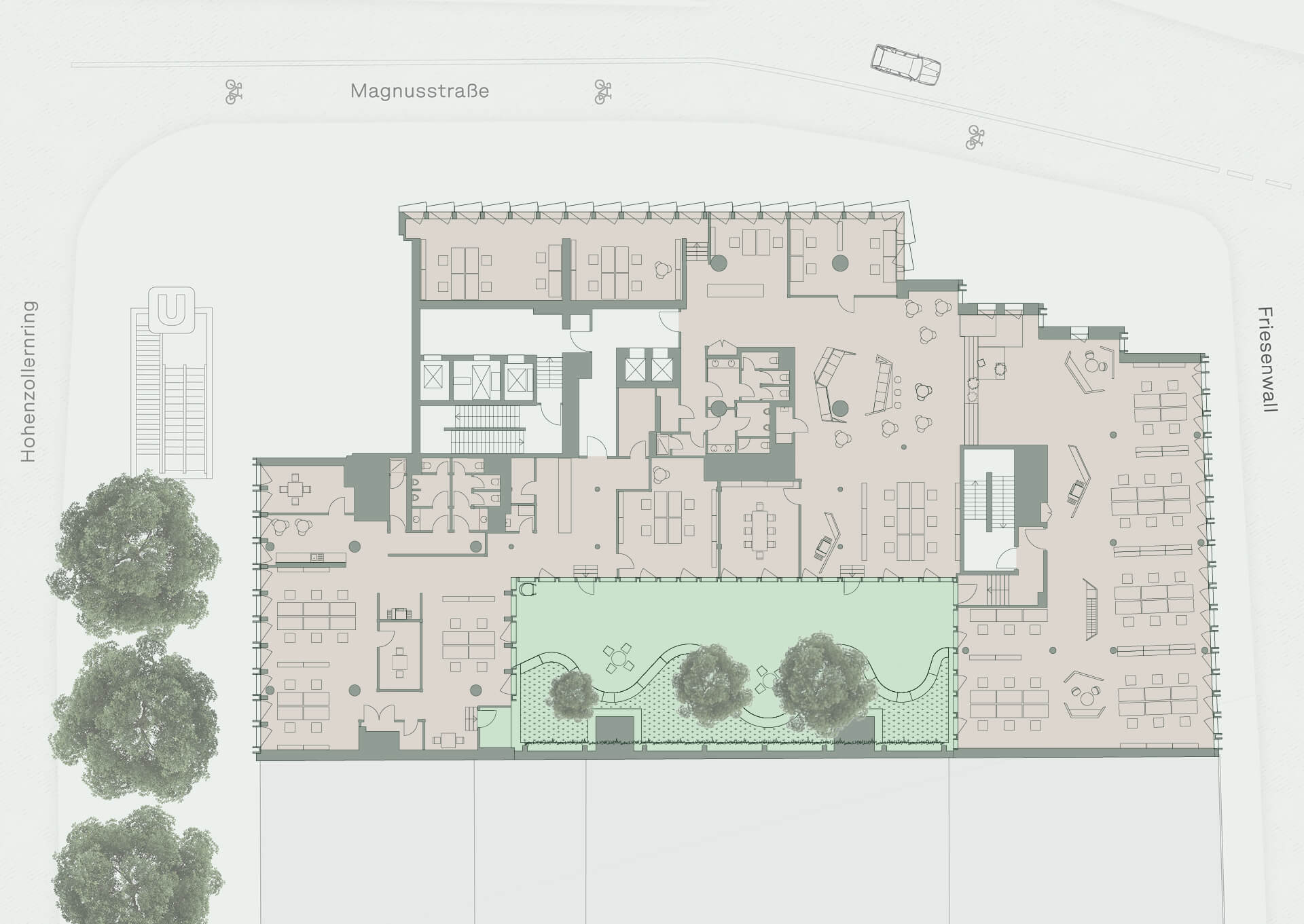 Dank der Anbindung an verschiedene U-Bahn-Linien direkt vor der Tür steht auch einem modernen Verkehrsmittel-Mix nichts im Weg.