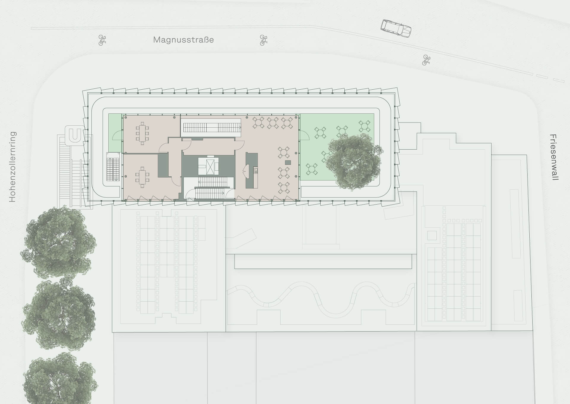 Der eigene Bike Park mit direktem Anschluss an die neue Fahrradinfrastruktur der Stadt Köln macht die Anreise so komfortabel und umweltfreundlich wie noch nie.