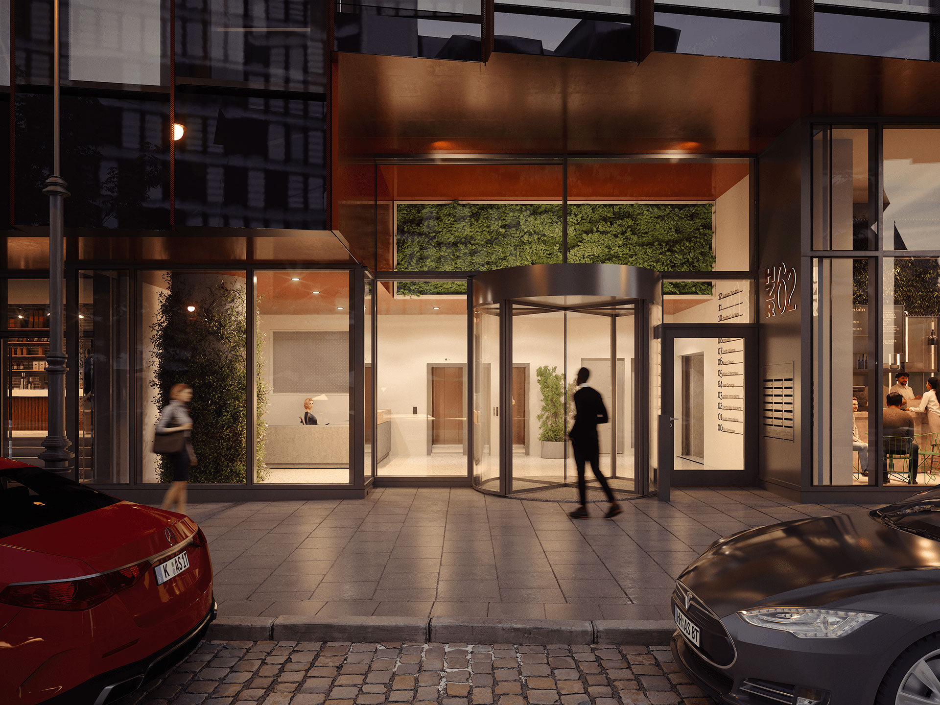 Dachterrassen, Innenhof sowie Green Wall im Innenbereich sind bepflanzt.