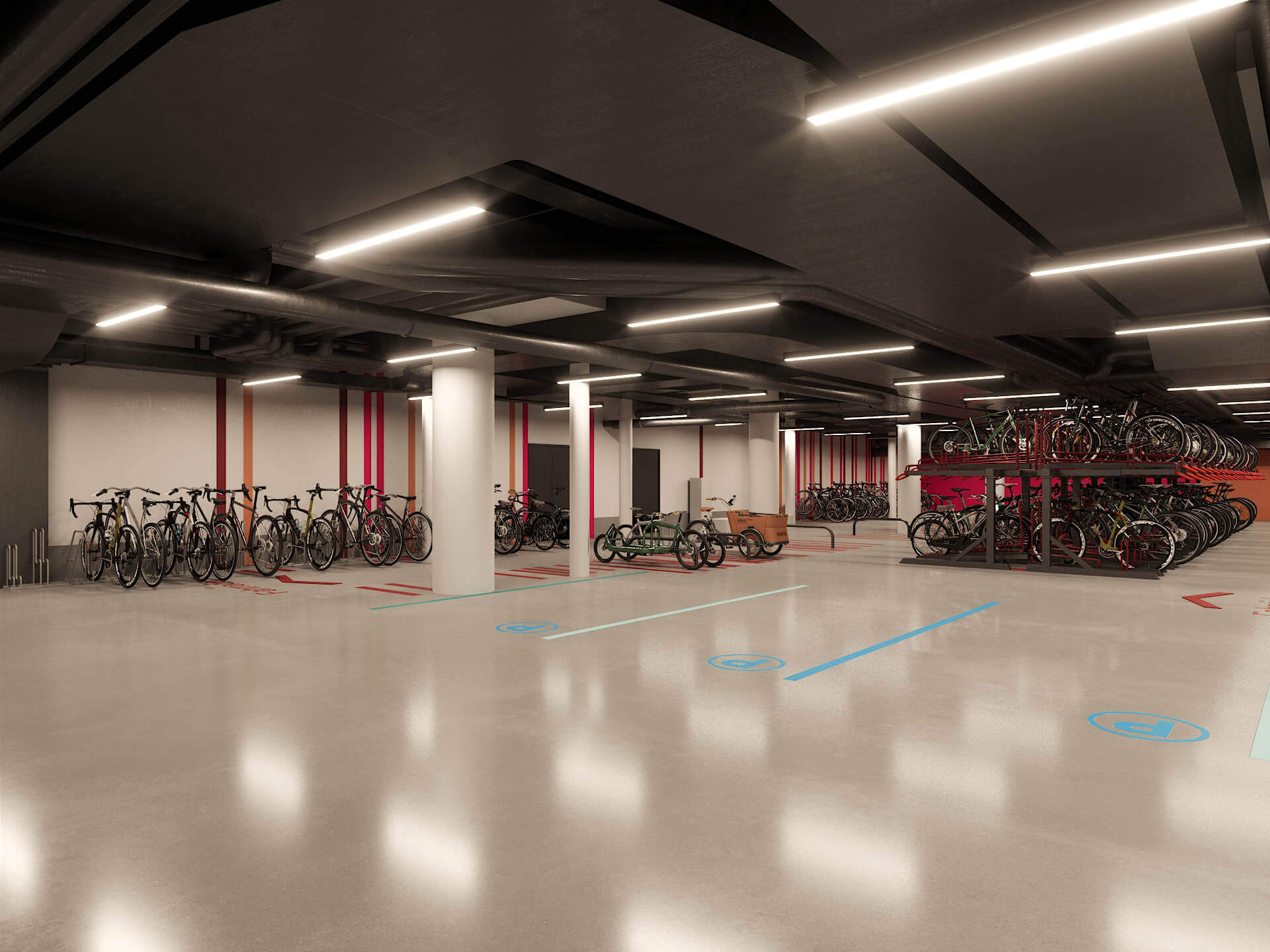 Der Bike Park im CENTRAL CROSS ist viel mehr als ein überdachter Fahrradständer. Hier gibt es Ladestationen für E-Bikes und Pedelecs sowie genügend Platz für Cargobikes.